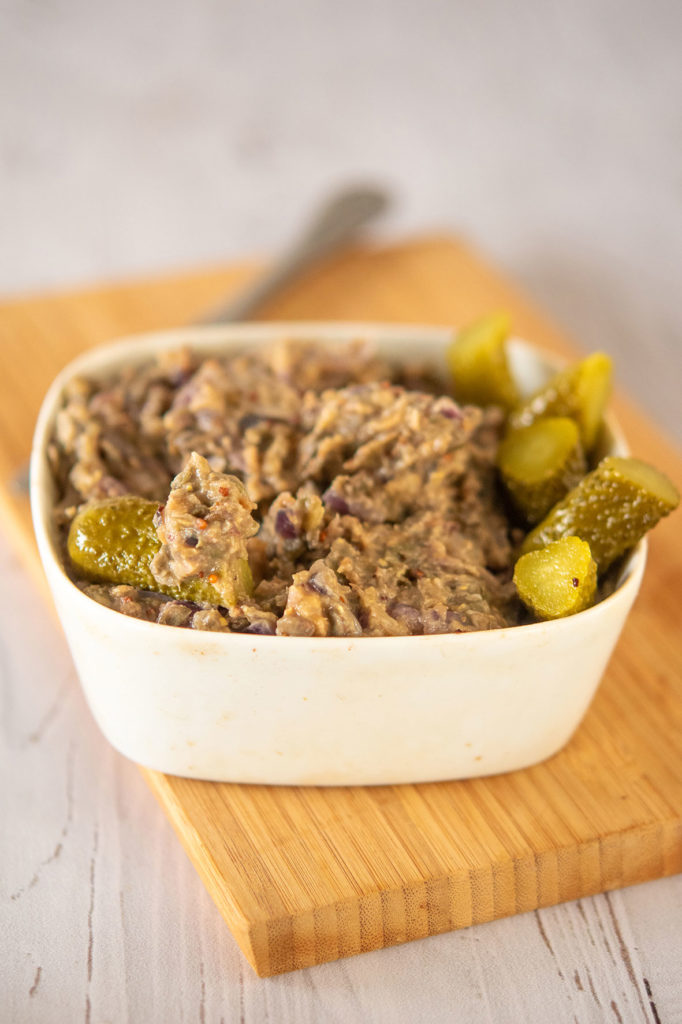 3. Mixer rapidement l’oignon et les noix avec les lentilles, la sauce de soja, le jus de citron et la moutarde.