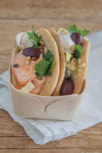 – Utilisez vos tartinades riches en protéines en déco dans l’assiette, avant de les recouvrir d’un taboulé ou autre salade de céréales/pâtes agrémentées de fines herbes. N’oubliez pas quelques pignons grillés !