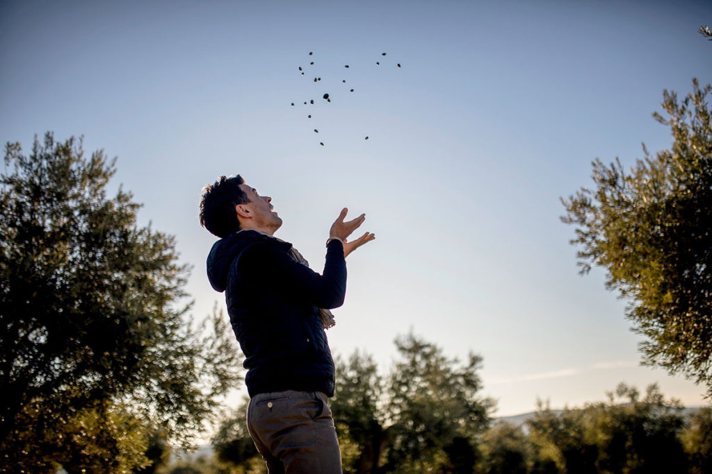 Je suis élaïologue, métier qui est à l’huile d’olive ce que l’œnologue est au vin. Je plante des oliviers, je presse et je déguste. Avoir de bonnes machines ne suffit pas pour faire de bonnes huiles d’olive si on ne sait pas déguster. Lorsque j’ai produit ma première huile d’olive « fruité vert », elle était parfaite à mon goût : superbe amertume, du piquant… La perfection sur le plan organoleptique et pourtant je n’ai pas réussi à la vendre car les consommateurs ne comprenaient pas ces attributs positifs de l’huile d’olive. J’ai appris à adapter mon travail au consommateur tout en lui apportant le meilleur. Mon épouse Chloé m’a rejoint dans l’aventure et m’a aidé à développer l’activité au travers des magasins bio. On y échange souvent avec les équipes des magasins et les consommateurs pour leur transmettre un peu de nos connaissances.