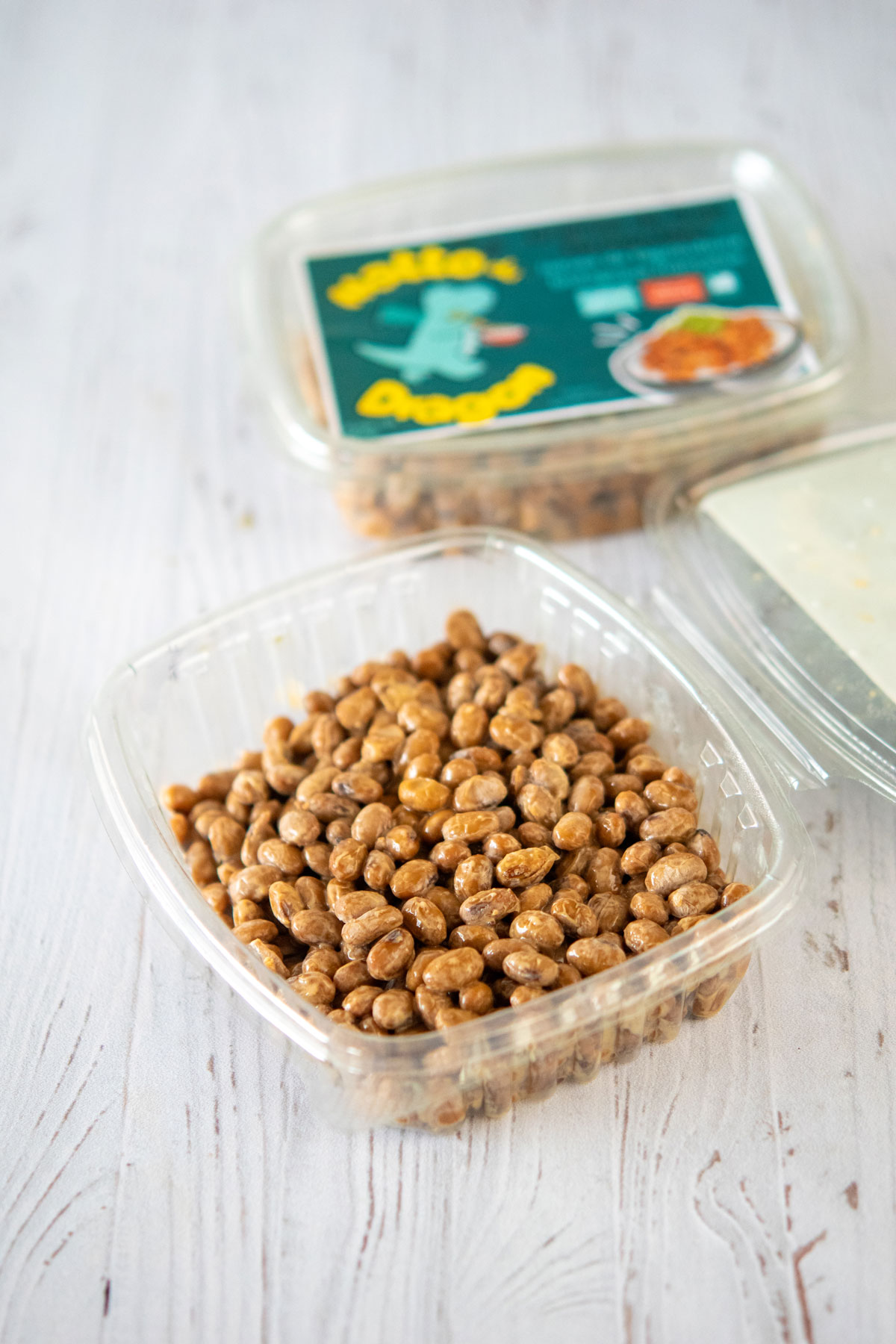 Emmanuel : ce sont des graines de soja, les mêmes qui servent à fabriquer le tofu ou la boisson de soja. On les cuit et on les ensemence avec un ferment. Une fois le soja fermenté, on obtient une texture un peu gluante (en japonais, on dit neba-neba), une saveur puissante et des caractéristiques nutritionnelles spécifiques.